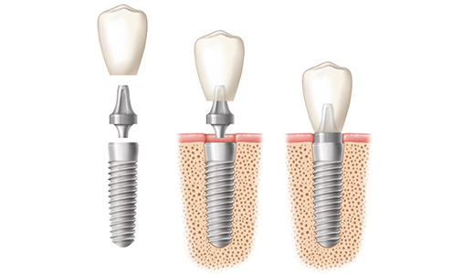 Implantat je trenutno najsodobnejši način nadomeščanja posameznega manjkajočega zoba, predela brez zob ali popolne brezzobosti. Gre za poseben titanov vsadek, ki ga kirurg privijači v čeljust. Ko se implantat uspešno zraste s kostjo (cca. 6 mesecev), zobozdravnik nanj namesti še prevleko, mostiček ali protezo. Prevleke na implantatih so idealna rešitev za manjkajoč posamični zob, saj za razliko od klasične krone sosednjih zob ni potrebno zbrusiti in jih zato ne poškodujemo. Kirurg vstavi implantate, posebne titanove vsadke, zobozdravnik pa potem na ta implantat zacementira krono. Za dolgoročno ohranitev implantatov je potrebna perfektna ustna higiena in redne kontrole pri zobozdravniku. V nasprotnem primeru lahko pride do vnetja-periimplantitisa in izgube implantata.